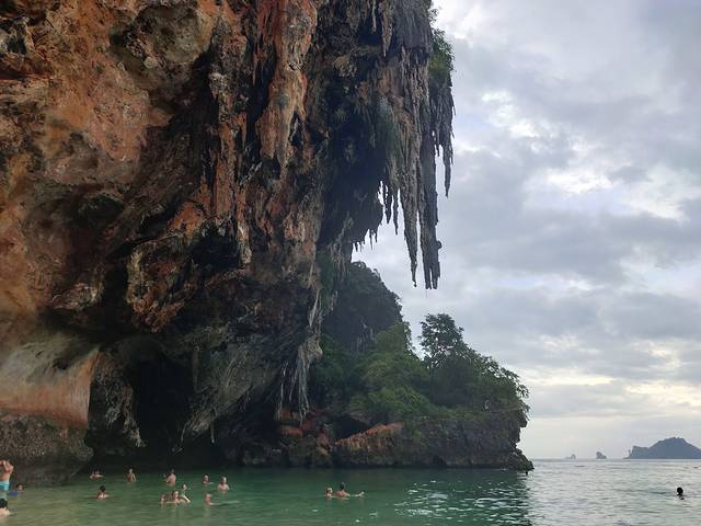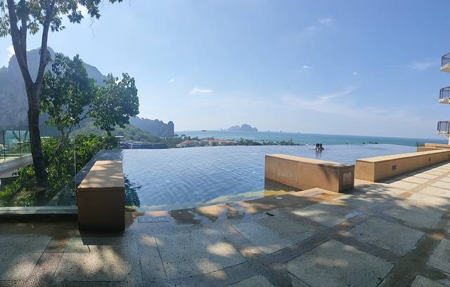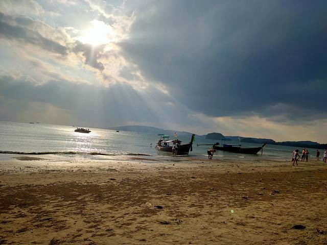 最后一晚上住在甲米的奥南悬崖海滩酒店。甲米比较好的酒店,不像普济是那种占地面积超大,因为奥南海滩前面是海,背后是山,所以这里的酒店都是依山而建的。到了甲米英文就比较重要,就像最后一晚住的酒店,几乎不会讲中文,都要靠英文交流,说起来甲米的酒店,前一晚上住的是洲际的智选假日,服务实在是太糟糕了,到了前台没有人帮忙拿行李,下雨了没有人给送伞,酒店里的拖鞋给的居然是一次性的纸拖鞋,而且还不是那种国内四星酒店稍微厚点的,是拖鞋,真的就是普通的三星以下的酒店提供的那种纸拖鞋。最后一晚的悬崖海滩酒店服务很不错。Check out之后,因为是晚上的飞机,所以下午就在海滩闲逛到了大巴该来接我去机场的时候,回到悬崖海滩酒店拿行李,大堂经理就问我要去哪里,我说等车来接我快到了,大堂经理就让我在前台的living room里面等候休息,有洗手间有空调什么的,实在是太体贴周到了,车来了之后前台的小姐姐会进来叫你,然后很热情的帮我把行李提到了车子跟前把行李放下掉头就要走我赶忙叫住小姐姐,给了她5元钱的小费,小姐姐超级开心的。小姐姐叫rainy。这晚酒店也是浦发爸爸赞助的。这天在奥南海滩上闲逛的时候,居然又碰到了前天攀岩时候碰到的那对美国夫妇,连着三天碰到三回,真的是缘分,最后frank先生还为我和他的太太拍了几张合照。有些些感动。
