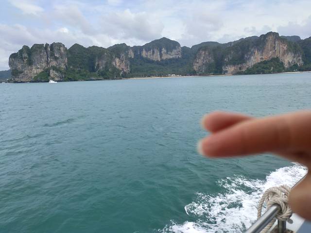 坐大船从普吉镇到了甲米,个人的感觉甲米要比普吉岛好一些,因为甲米比较繁华的就是奥南海滩那一条街,感觉非常的悠闲,适合度假,而普吉就过于喧嚣嘈杂了。坐船从普济到甲米大概需要三个小时,船是9:30出发。。推荐坐船,可以随意走动,比坐车要舒服一些。船上还有咖啡和水提供。