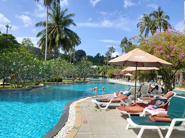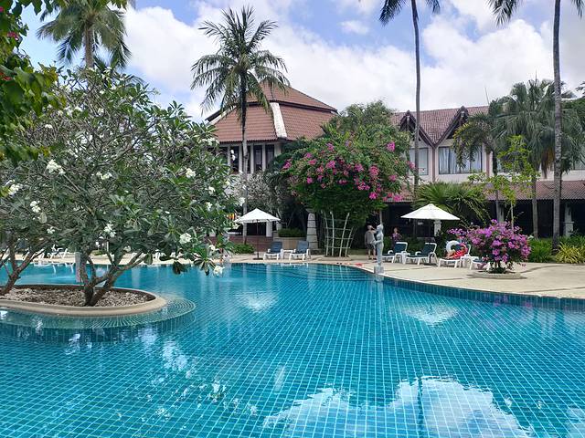 酒店的游泳池之三,普济岛上比较好的度假村都是那种从大门口看过去,一眼望不到建筑的,不明白里面是干嘛的,占地面积超大的酒店,反正是能看到比较高的楼的那种酒店都比较一般。