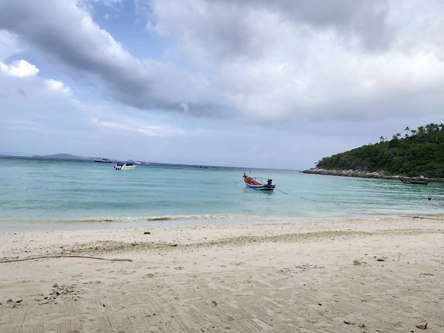 去洛克岛是在淘宝上的什么武汉国际旅行社,就是蜜橙旅行好像。居然因为要上洗手间还有要换潜水服这种无聊的小事就错过了洛克岛的浮潜,简直是后悔死了,但是洛克岛给我们放了两个小时的游玩时间,还是可以很悠闲的在沙滩上晒晒太阳在浅海地区自己浮潜的,洛克岛的水质要比斯米兰好,而且从甲米出发的洛克岛只需要一个半小时左右,时间比斯米兰短多了。然后下一站去哈岛,结果浪很大,都是黑云海都变黑了,考虑到安全问题就没能再哈岛浮潜又返回了码头。这一天很神奇的是在洛克岛上又碰到了昨天那对美国夫妇,于是大家又开心的尬聊了一会儿。
