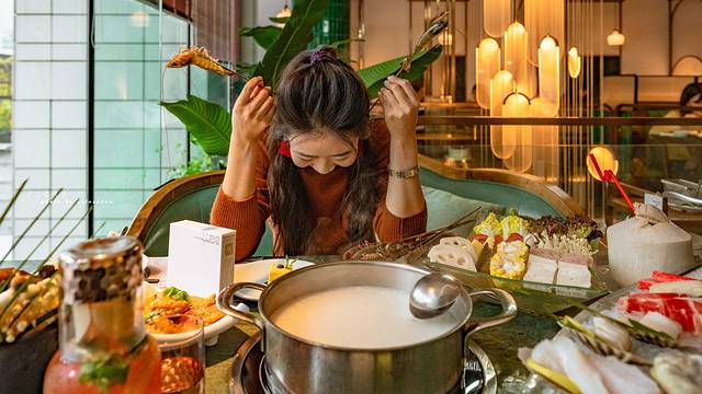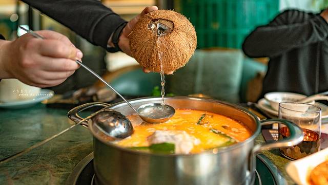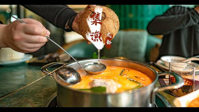 集渔泰式海鲜火锅的特色之处便是他的锅底,它是由熬制了四个小时的野生鲫鱼汤,加上特制的泰式冬阴功汤底料配置而成,加热到一定温度后,在导入新鲜的椰汁,一份完美的锅底就这样出锅了,这里也是懒人的最爱,海鲜全部已经剥好,每隔一段时间,工作人员就会过来煮海鲜,这里简直是懒癌患者的天堂。