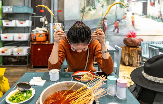 马路边边麻辣烫这家本来没有在行程中,但是中午从成都 吃客出来后,隔壁这家店排满了人群,后来才决定晚饭的时候来这里一探究竟,所以临时决定了晚饭在这里解决,但是一定要提前来排号,否则会等很久,走的时候门口依然排着长长的队伍,太火了这家店。