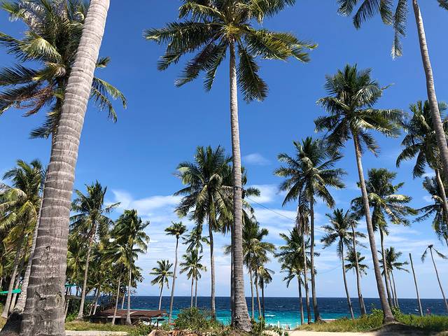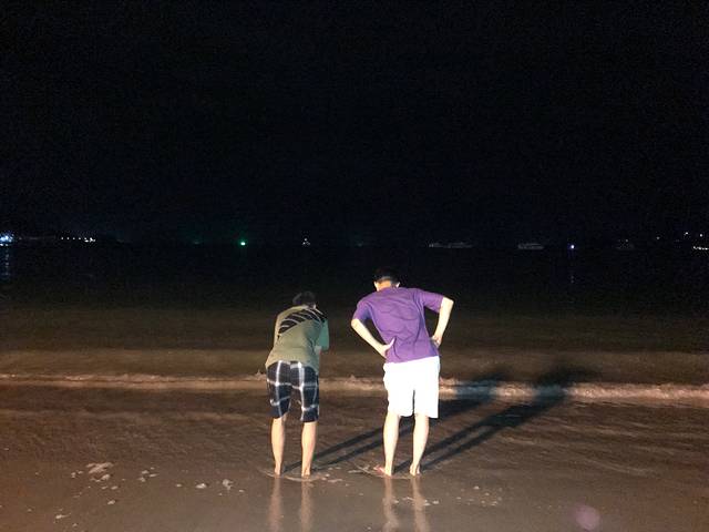 穿梭在普吉镇的喧闹中,一路上五颜六色的房子,在绿色植被间错落成排,砖红色的屋顶,淡色的楼体,在这天光刚亮之际,美轮美奂。抬头看着蓝色的天空带一点点的青云,与大海心心相映,若是没有云彩,可能我真的分不出这是两种美景;耳旁一波波的海浪声,下车走近些,海浪盖过我们的脚踝,每一次的海浪都拍打着我激动地心,最后被海水冲得满是细沙才肯罢休。