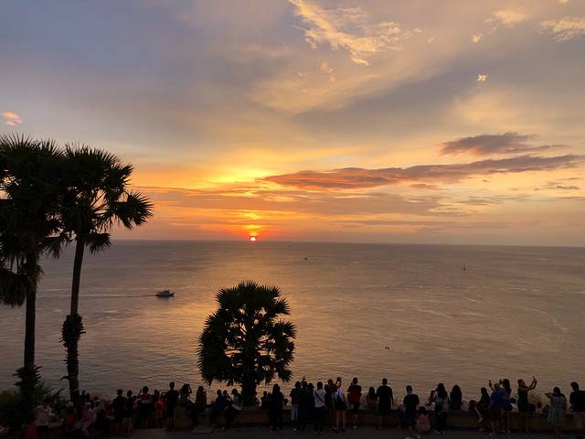 普吉岛的傍晚,云压得很低,一个人在船头吹着海风,看着很美的日落,喝了清冽的冰啤,将自己彻底放空;爱上普吉岛这样的地方实际上并不太感冒,自从这次普吉岛归来,感觉爱上大海了,爱上那种租上一把太阳伞,超市里买个垫子,然后就一点时间观念没有的在沙滩上发呆打坐的日子;爱上了躺在船头一边喝着冰镇啤酒一边看着那一抹未散去的红云;被夕阳染红的大海,此刻已经顾不得汹涌的波涛海浪,只想静静地看着大海远处地落日,只希望时间就静止在这一美如画的时刻。