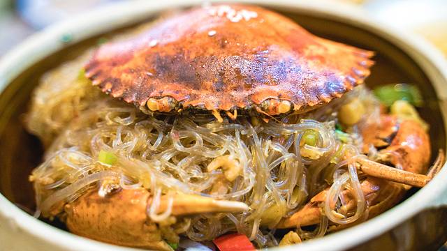 和乐蟹粉丝煲,一定要挑选肉质饱满的和乐蟹,为了保证口感的纯正一定要选鲜活的。不仔客海鲜保证了我们挑选的和乐蟹的品质,并且用独特的方式烹饪,既保证了蟹的口感,又丰富了食材。