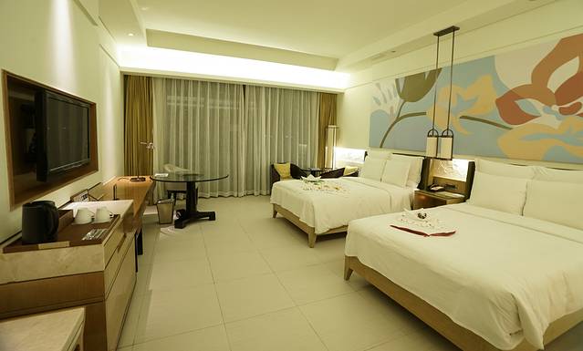三亚有太多的酒店,不同价格,不同星级的比比皆是,所以选择一家适合自己的酒店很重要。经过一系列的对比和选择,我最终选择了位于风光旖旎的三亚市国家海岸海棠湾,毗邻蜈支洲岛、南田温泉的旅游胜地——三亚万丽度假酒店。最主要的一个原因是这次自驾三亚的行程算是环岛了,所以在酒店的选择上,以中间的位置为最佳,这样不仅可以节约时间,也可以合理的安排行程。