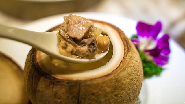在三亚,不仅仅是吃海鲜,还要品尝一下地道特色的海南特色美食,在各大攻略和朋友们的推荐下,我品尝了最具特色的海南三道美食。首先是这几年特别火的椰子鸡,在三亚,我们经常吃到的椰子鸡如火锅一样大份,其实很多海南特色餐厅还会有小分量的椰子鸡盅,是让我安心的份量。虽然小巧,但是口味一点都不含糊,六个小时的慢火炖,汤汁浓郁,口齿留香,令人念念不忘。