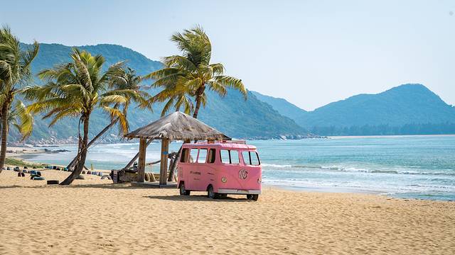 呆呆岛充满了ins风,在海滩上各式各样的古船,七彩的沙滩椅、圆顶床、篮式秋千、太阳伞等等,让这片沙滩既唯美又富有情调,尤其是适合情侣打卡。