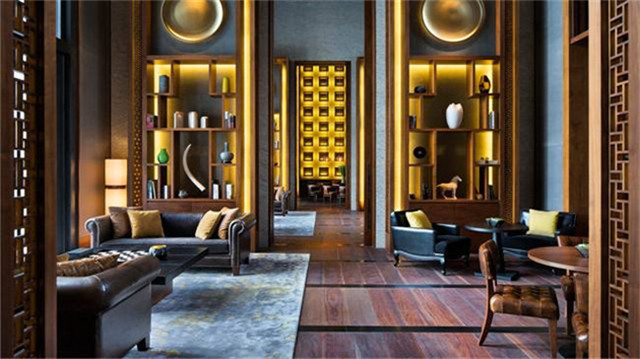 大厅内,2,5米高的艺术品大气典雅,木棂格子窗取代密封落地板墙,左右两边约20米长的桌子上,陈列着各种独特精致的艺术品,予人以温暖亲切之感。一路走来,视觉不乏艺术品的洗礼,在柏悦,艺术品一直也在阐述着对不同建筑的独特理解。