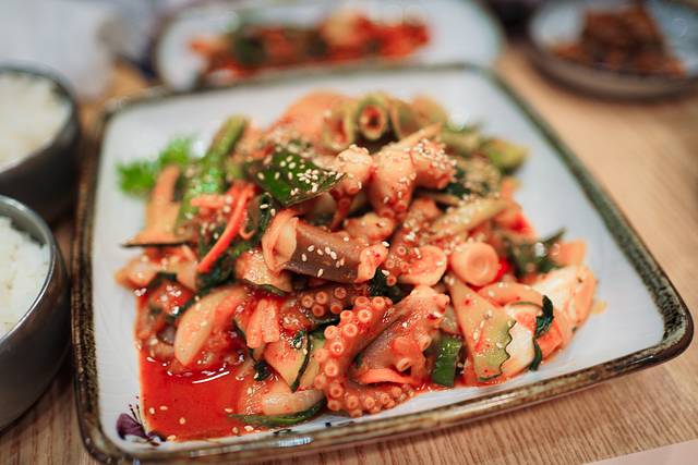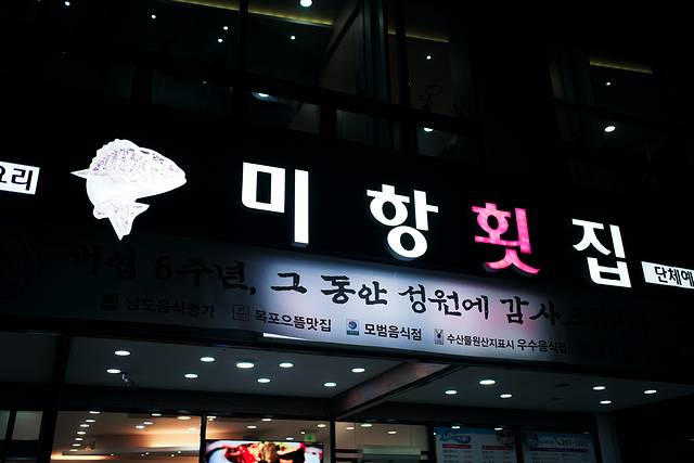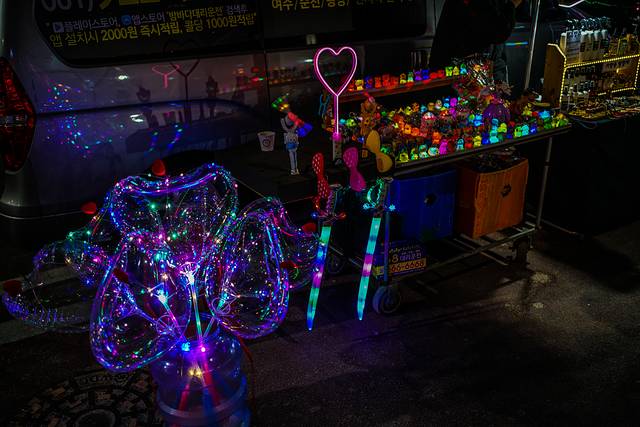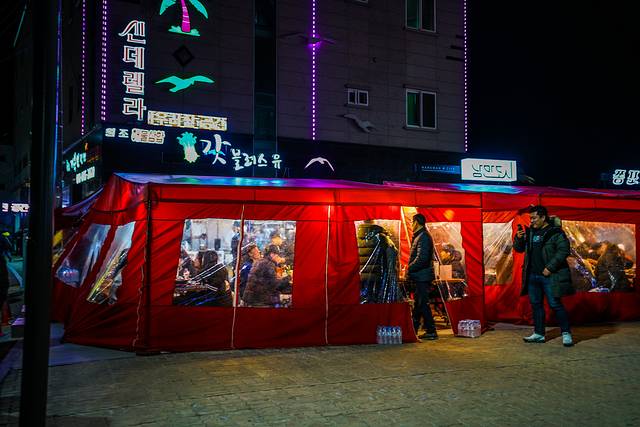 欣赏完华丽精彩的海上演出,激情还未褪却的我们来到附近的浪漫小吃摊一条街,寻觅美味宵夜。海鲜锅、酱蟹、活章鱼都是这里特产,这里还有许多网红店铺,runningman拍摄过的酱蟹食堂也在这里哟。