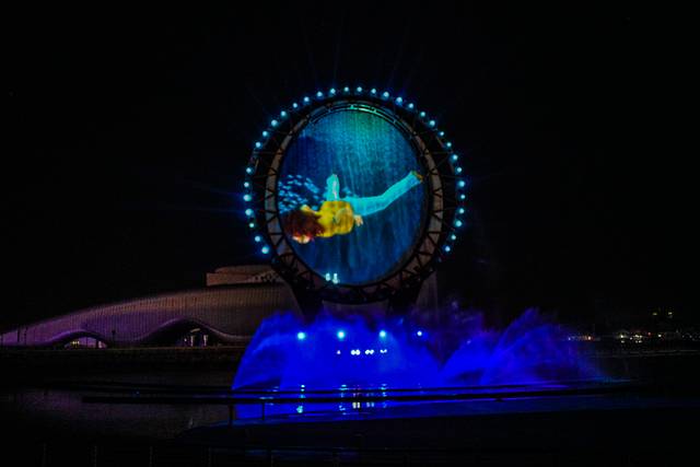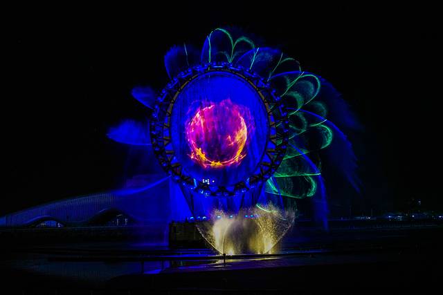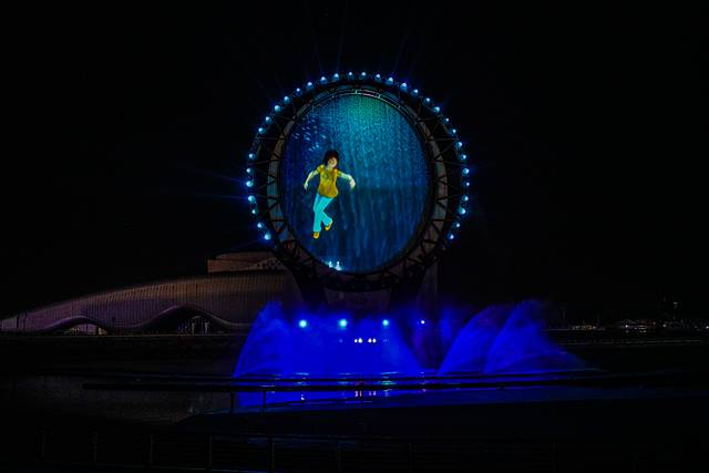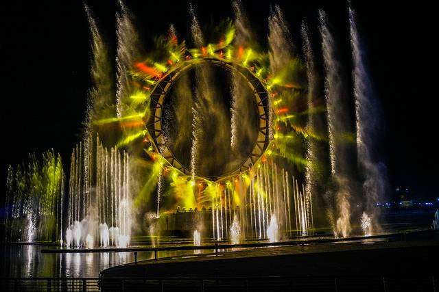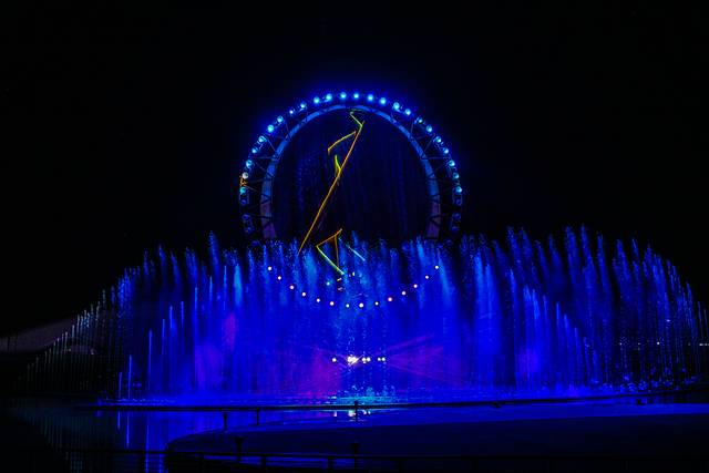 利用喷水喷嘴,宽敞海洋为背景,配合多种颜色的照明、射线、全息图,制造出华丽的水幕。约200座足球场大的舞台,可观赏博览会主题的体验空间与先进多媒体秀、超大型海上水舞秀、国内外海洋公演活动等,并首创全球三次元影像的技术,营造不可思议的视觉飨宴,适合男女老少等各个年龄段,即使是45分钟片长都觉得时间过得太快。