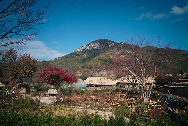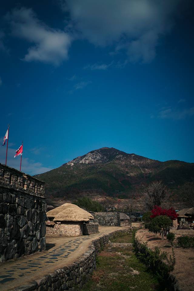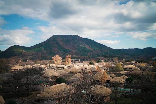 乐安 邑城民俗村建在 全罗南道 顺天市 18000多坪的开阔地带,下车后,眼前便是一片传统草屋,仿佛从现代城市穿越回了古代 朝鲜 。在 乐安 邑城民俗村不远处便是 韩国 第一个被指定为国立公园的智异山国立公园,巍峨的智异山赫然屹立民俗村旁,仿佛一位勇士,守护着村落的宁静安详。