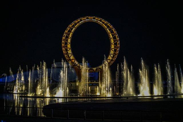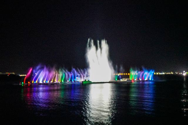吃完晚餐,我们便来到海边,此时海洋喷泉秀刚刚上演,除了喷嘴被冻的冬季之外,4~11月间每天都进行2~3场的喷泉秀,276台喷嘴中射出的喷泉随着古典音乐的旋律到现代热歌,最高可冲出70m,精彩又壮观,点燃了木浦夜的激情。