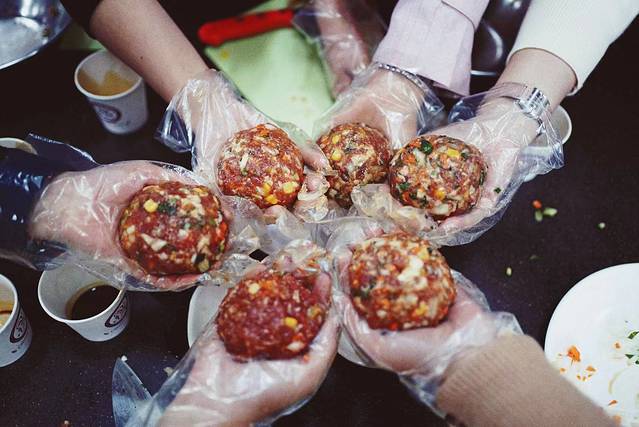 在工作人员的指导下,一盘牛肉饼顺利出锅,香喷喷的气味弥漫在整个房间,而料理后的牛肉饼口感非常细腻,咬一口肉汁四溢,맛있다~