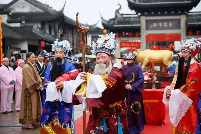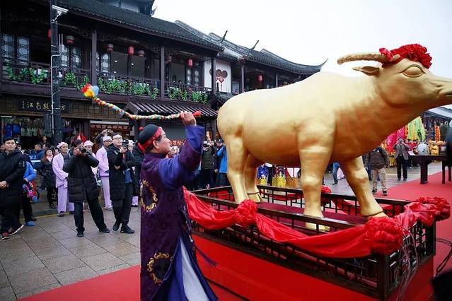 农历大年初一打春牛。金黄的“春牛”将由八名壮丁抬着,“福、禄、寿”三星、八仙等长长的贺春队伍相伴左右,游弋在古镇周庄的大街小巷,挤闹市,放鞭炮,祈求新的一年红红火火,万事如意。