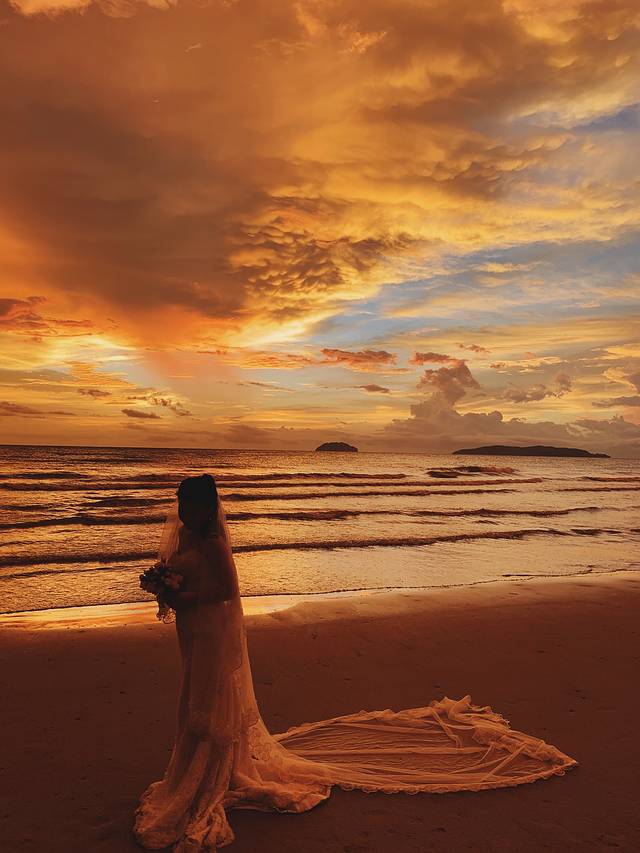 下午赶在落日前化好妆,出发沙滩拍夕阳