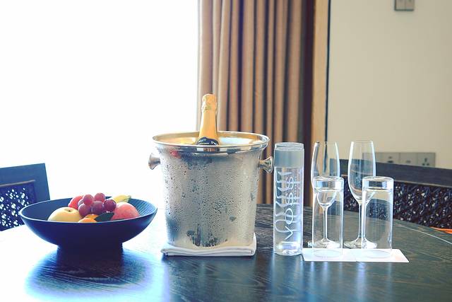 晚上的悦吧灯光幽暗静谧,这里的鸡尾酒创意完全不输给任何一家城中酒吧。提前品尝了酒吧为即将来临农历春节而准备的两款鸡尾酒:一盏花灯、贵妃醉酒。颜值和创意首先取胜。不胜酒力的也可以选择试试无酒精鸡尾酒,主要目的还是放松、让心情在夜晚的小酌中有个缓冲。