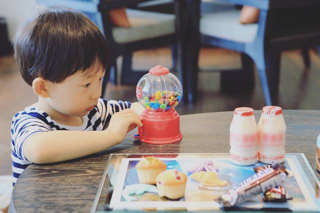 小孩子对M&M's糖果机是无法抵挡的爱