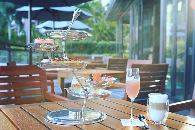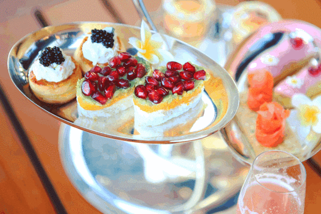 午餐后我和瞧瞧午休,瞧爸在焕水疗完成了一次全身心的自我疗愈。如果像我一样,还是下午茶爱好者,酒店大堂酒廊的当季特色主题下午茶“石榴柚惑”绝对是好选择。葡萄柚慕斯、青柠歌剧蛋糕、石榴蜂蜜柚子茶冻、蟹肉鱼子酱柚子盒、蜜柚烟熏三文鱼……搭配柚子茶或咖啡,吹着海风享受一个慢节奏的下午。