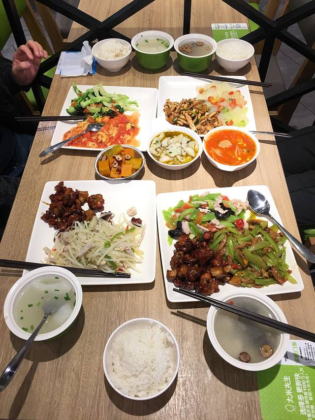 前一天那顿面食的扛饿能力让我们不敢再轻易尝试,但是重口味的早餐我们吃不惯,这边商圈的麦当劳、肯德基居然没有6元起的早餐套餐!吃了两个“怀粮生煎”垫垫肚子,我们就逛到了10点,遇上了“大米先生”开始营业,然后就吃了一顿心里感觉很温暖,肚子真的很温饱的早饭 (一共 61元)