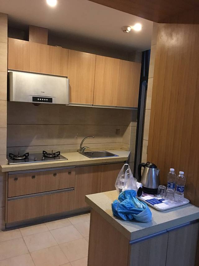 我们被安排在27楼的两个相连房间,房间比较大,有厨房有小阳台,有冰箱有洗衣机,就是感觉有点旧!但最大的问题是,我们房间的空调是坏了的,用暖风机代替了,洗澡时热水和冷水不停交替转变,要么太冷要么太烫,联系房东听他电话指导也没改善到!隔壁房间,空调虽没坏,但也不怎么制暖,老Mo和JoJo洗澡全程冷水,也是改善不了!所以估计夏天住还好,冬天有点考验,不过房东挺好的!
