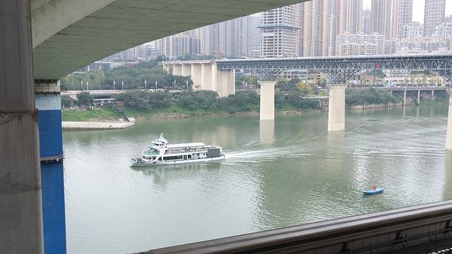 6、千厮门大桥是在洪崖洞的第11层走过去的(即与解放碑走到洪崖洞那条路属于同一地面),如果你不小心像我们那样下去了一楼江边,那真是体力锻炼了,而且楼梯有点难找!