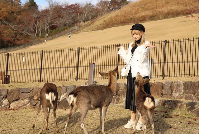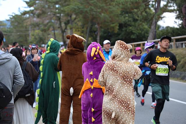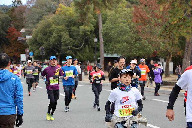 我们去奈良公园的那天刚好有马拉松比赛,所以只能在公园下车,原本计划是坐车到春日大社-若草山-奈良公园的路线游玩的