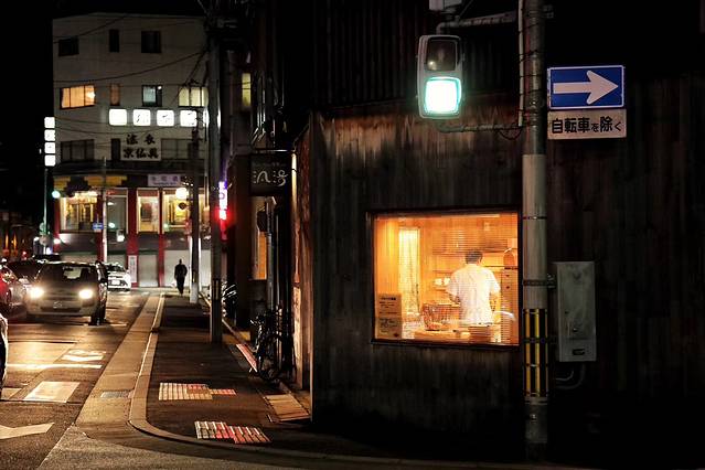 在去吃饭的路上,路过很多店,每家店都映出暖暖的灯光,路上的人不多