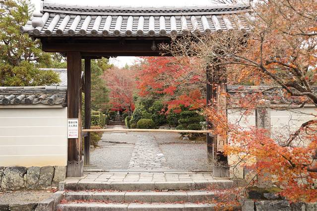 天龙寺的很多殿的门口都是这样有条竹竿拦着
