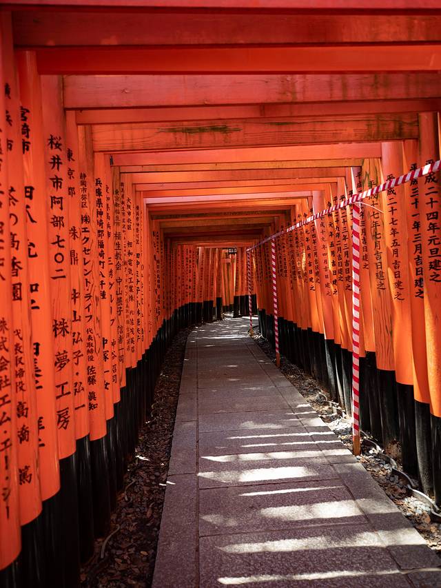 以前我看到网上有很多空无一人的千鸟居的照片,还在感叹要多早去才能拍到这种照片,这次才知道千鸟居有两条道,一条是入口一条是出口,在出口那条道很容易就能拍到没有其他游客的照片