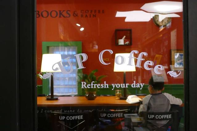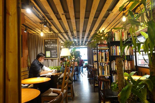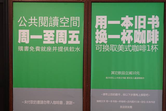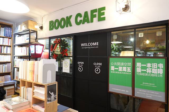 二楼有咖啡馆BOOK CAFE,也有几个书架可以边和咖啡边看书,捐一本好书还可以换到一杯美式咖啡。