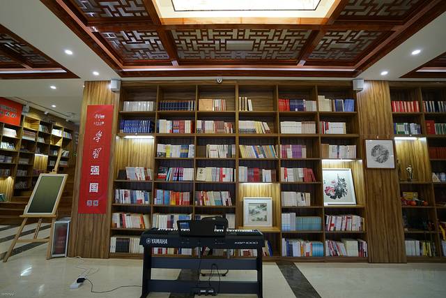 馆内空间比较大,被分割为不同的免费阅读空间,融合中式、欧式、禅式、儿童等不同风格,展示陈列各类新书和常销图书5万余种。