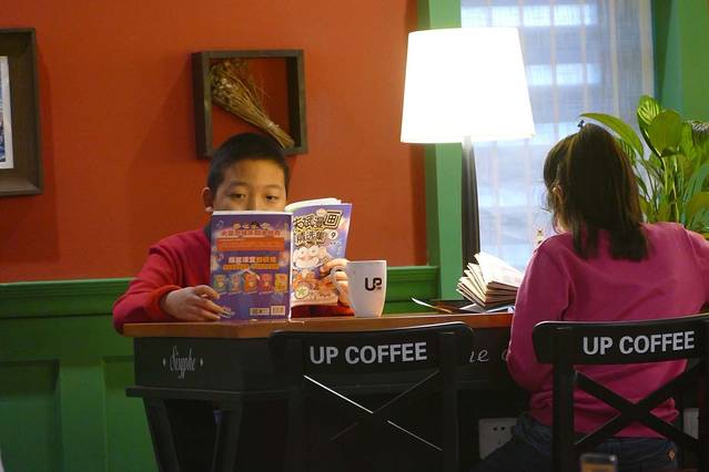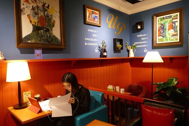 书店中间的免费阅读空间永远是满座的,往里走到最里面有一家西西弗书店自己的咖啡馆,可以在咖啡馆点一杯咖啡阅读。咖啡馆里也基本都是满座,但非常安静,基本没有人聊天。