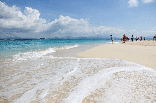 这里可是真的太美了。水天一色的感觉心情就挺好的。这里的水很清澈,水温也刚好,脚踩着细软的沙子,松松软软的,真的感觉太奇妙了。