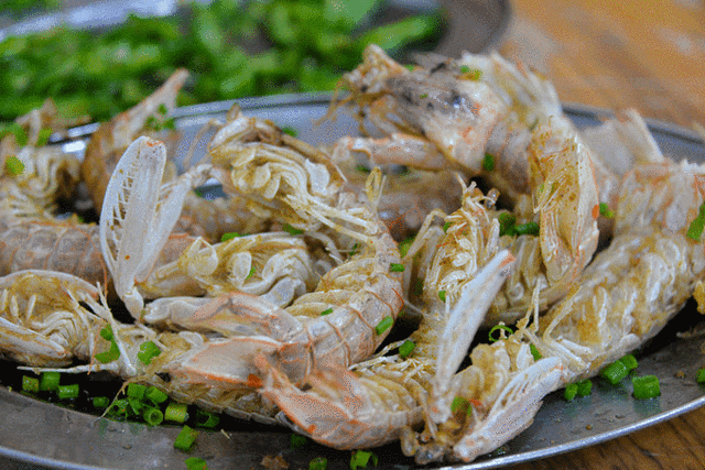 店里面人也超级多,但是没有等都久等来了我们的第一个菜---椒盐爬爬虾,味道那是相当地赞。
