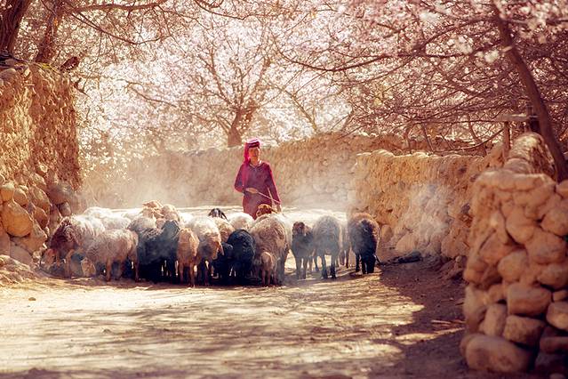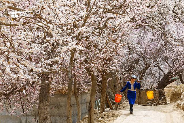 远处便是杏花村,完全的被杏花包裹着,偶有云烟升腾,或是那户人家在生火做饭,杏花却在房屋前后忙活着不知干嘛。再远处便是昆仑大山和蓝天白云相接,不懂欣赏却不愿离去,就等着你把她们拍下来带走。约晚间15:00左右到达库科西鲁克阿勒玛勒克村,时间还早,自由活动的同时注意安全,在这个最美杏花村落,与大自然拥抱吧,这无私的馈赠。