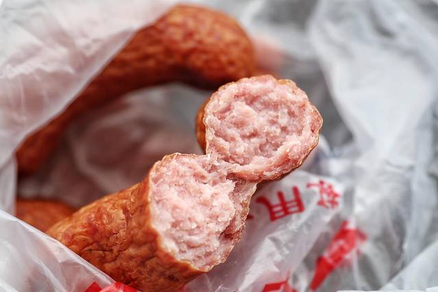 不过哈尔滨本地人都吃商委红肠,商委红肠的咸淡适中,肉质柔软细嫩,皮很薄,皱纹比较浅,蒜香味淡,外皮稍微硬,口感很好,吃不了肥肉的伙伴可以选择吃儿童肠哦。不过商委红肠要排队很久,而且卖完即止,建议早上六点左右去排队。