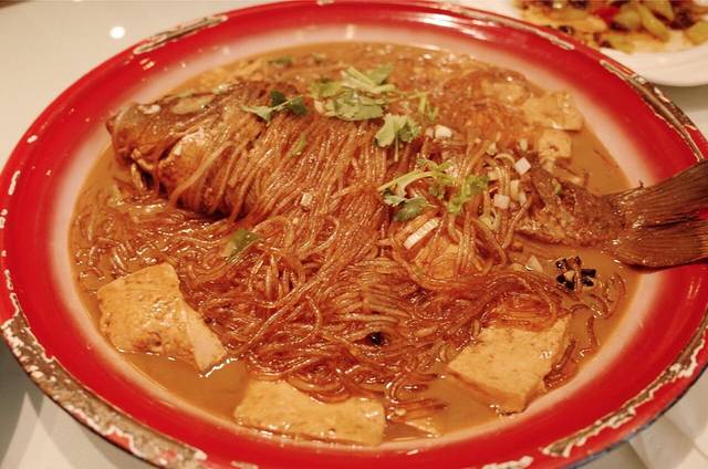 活鲤鱼和豆腐、宽粉条子炖在一起,味道鲜美,实在是到哈尔滨不可错过的一道炖菜。