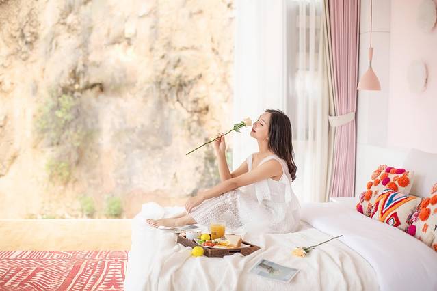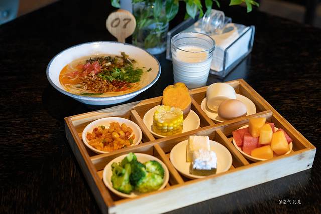 第二天让店里的管家把早餐送到了房间,在房间摆拍几张发个朋友圈。