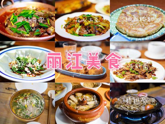 必须强烈推荐的美食,铜锅牛肉、腊排骨、花心土豆、鸡豆凉粉、纳西爸爸、雪山鱼、汽锅鸡、过桥米线等等。古城里有几家不错的餐厅,如果想要吃到性价比更高的,不妨在古城周边找找。