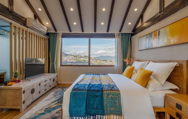 定了听花堂的四方街观景客栈,客栈在 狮子 山半山上,可以俯瞰整个大研古城。