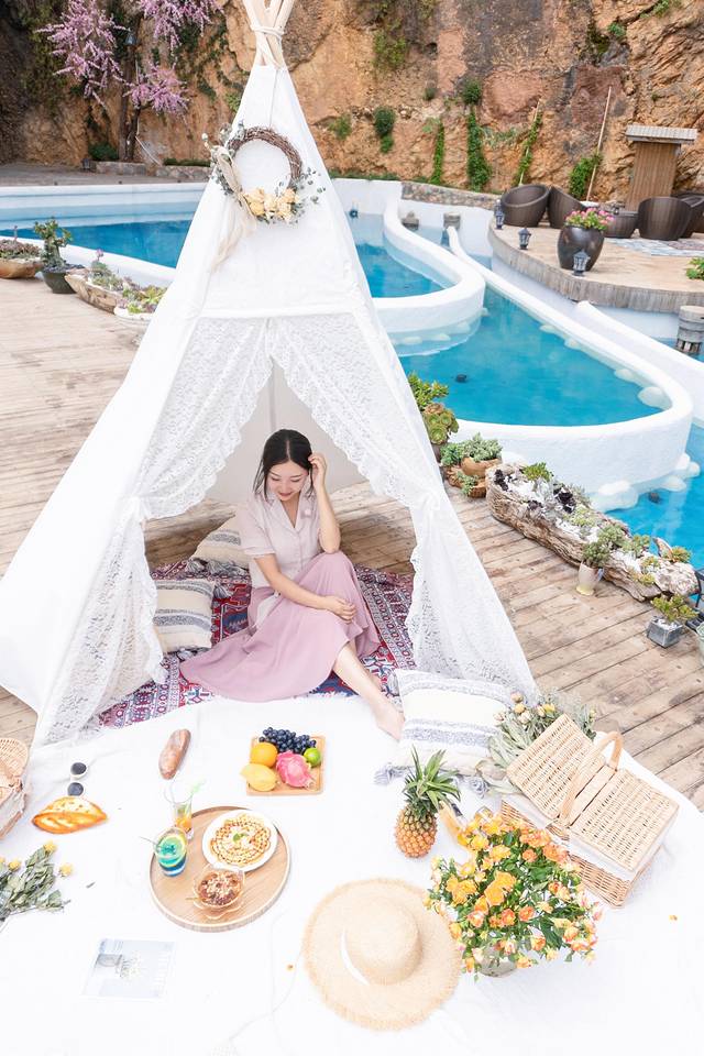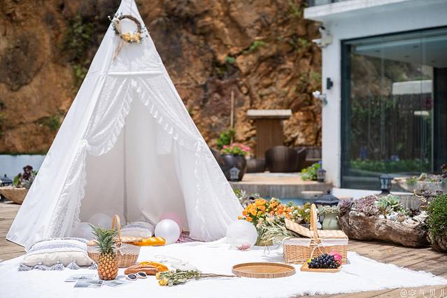 他们家的下午茶也是仪式感满满,店员看我们喜欢拍照,把他们的帐篷道具都给搬了出来。