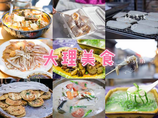 大理 的美食也是很多,去 大理 一定要试试白族酸辣鱼、生皮、水性杨花,这几样在其他地方就吃不到了。像小吃卷粉、烤饵块、烤乳扇、 喜洲 粑粑也是当地特色,值得一试。