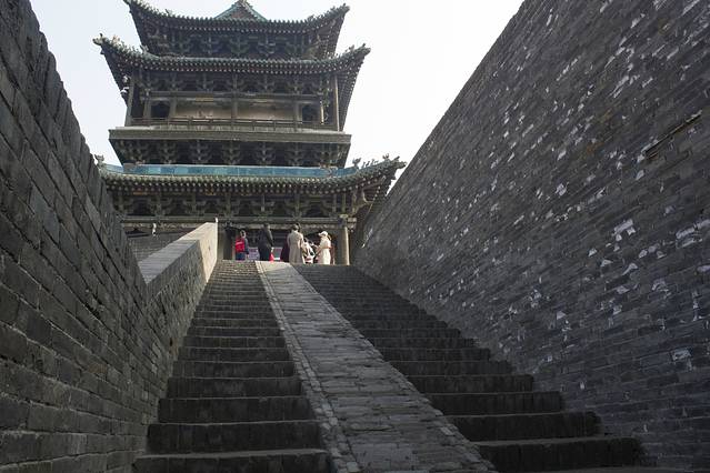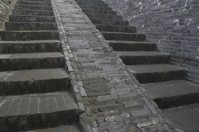 古城墙在大南门的地方,县衙与古城墙的距离很近,作为我们第二个穿越的地方。来平遥游玩的旅客,都会想爬古城墙吧,平遥的古城墙高6-10米,总长竟达6157米,平遥的古城墙共有六座城门,分别为:南门,北门,上东门,下东门,上西门,下西门。每个城门也都取有非常文雅的名称,读之古朴娴雅,品之则意味深长。