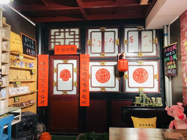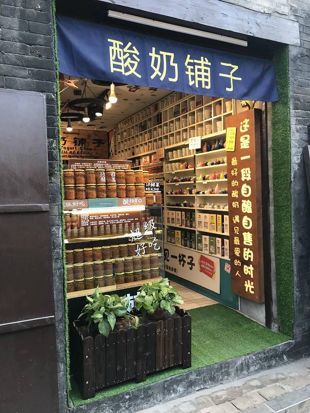 来之前就做好了功课,古城里有一家做酸奶的铺子,沿着衙门街找到了酸奶铺子。门面虽然不大,但穿过过道,后面便是就餐区域,整个店铺都是小清新风格,店家喜欢收集平遥文创,看到墙面有很多冰箱贴,都是平遥伴手礼。店铺还有很多马克杯,都是店家珍藏多年的被子。