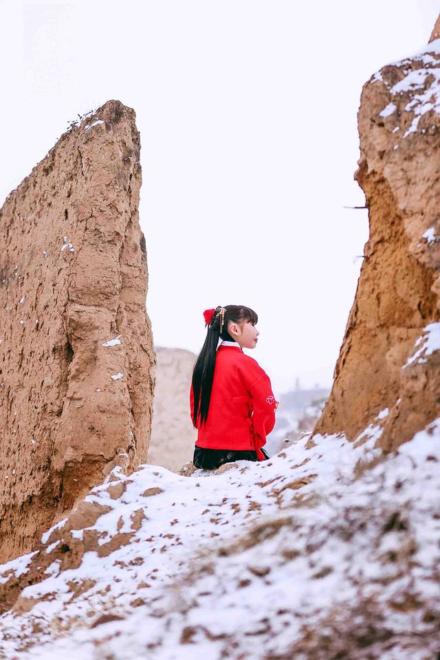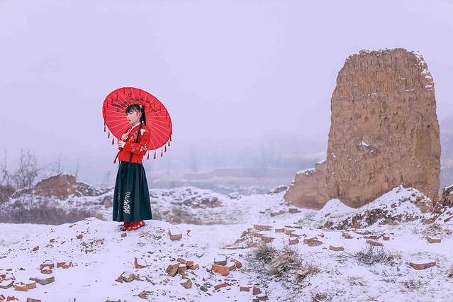在这里可以聆听城墙落雪的声音,雪花一片一片,在天空静静缤纷,古城的人因为下雪的原因明显比第一天多了很多,穿着古装,让小闺蜜(果果)穿越一回。