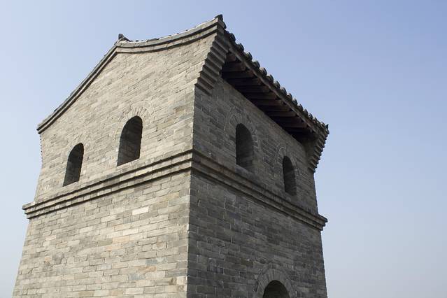 平遥古城每隔40-60米建有一座敌楼。结构和形体‘致。平面均呈:方形双层,硬山顶,四壁砖砌,底层开拱券门,内设木楼板二层开窗。敌楼在平日可供士兵休息避雨,战时则存放烟火设备和擂石等武器,借助凌空的建筑。环城共有敌楼72座和周城的3000个垛口组合起来,以数理而隐合了孔子“三千底子,贤人七十二”的历史典故。在庞人的军事设施城墙上还不忘文圣人一一孔子,恐怕是平遥城墙的独特的风趣也是平遥拥有的文化幽默。