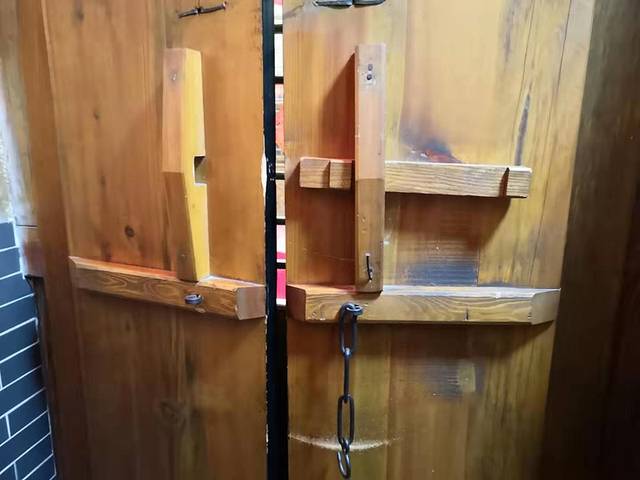 从大门跨进来一个斗大的“狱”字迎面而来,带着几分诡异,寓意为两只大狗看着犯人,再喊也没有用!
