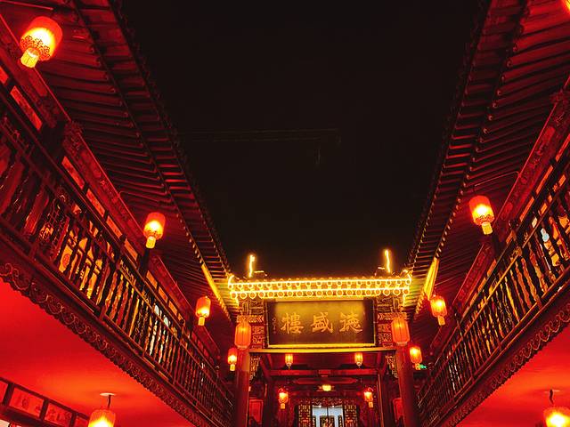 德盛楼客栈也是一家会议室酒店,客栈共有31件房,可以容纳80人。前面餐厅二层是一个古风式的会议厅。