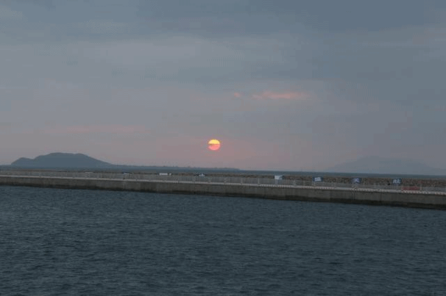 现实中:在游艇上夜游三亚湾,阴天,美丽的日落尚且如此,就不幻想倩影了……